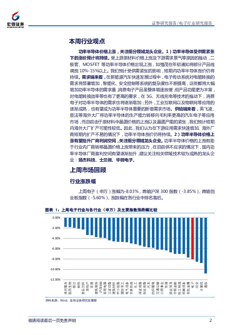 宏信证券:电子行业周报:功率半导体价格上涨,关注细分领域龙头企业.pdf