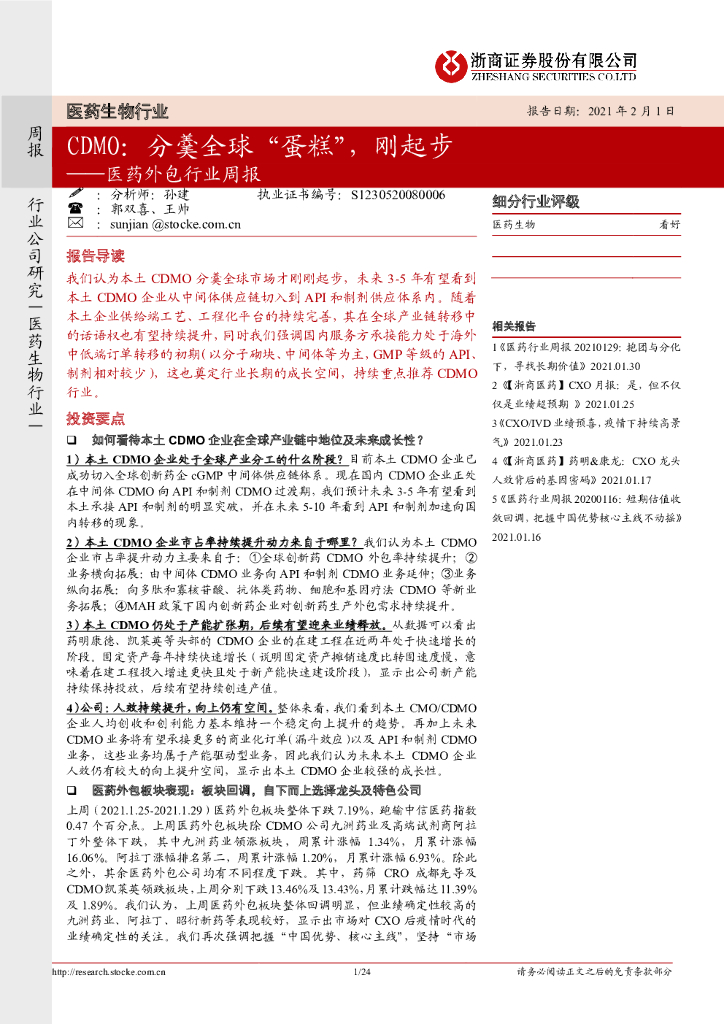 浙商证券:医药外包行业周报:CDMO:分羹全球“蛋糕”,刚起步.pdf
