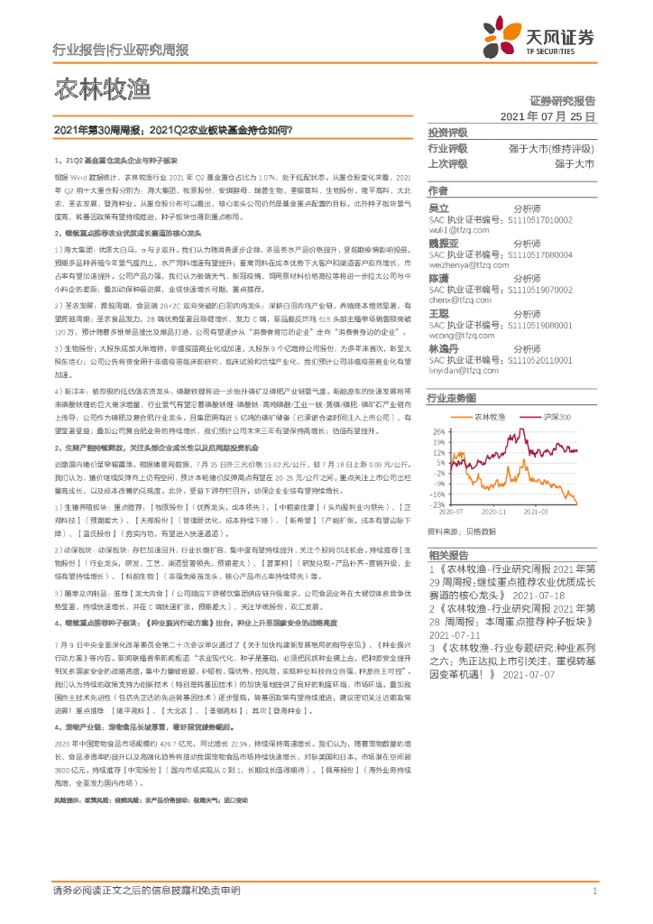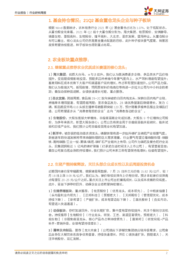 天风证券:农林牧渔2021年第30周周报:2021Q2农业板块基金持仓如何?.pdf