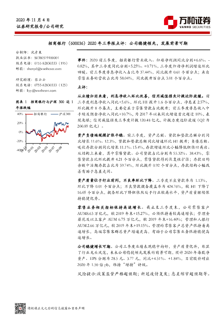 万和证券:招商银行(600036)-2020年三季报点评:公司稳健领先,发展前景可期.pdf