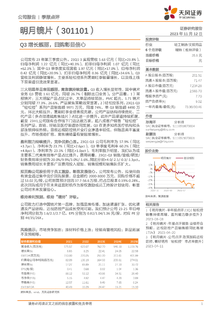 天风证券:明月镜片(301101)-Q3增长靓丽,回购彰显信心.pdf