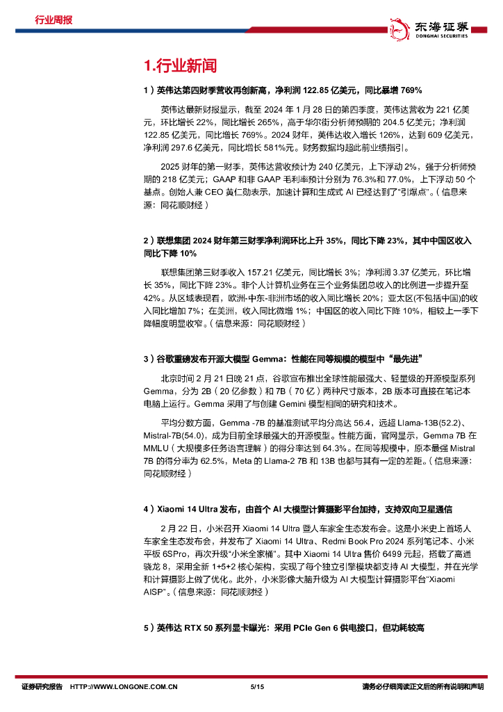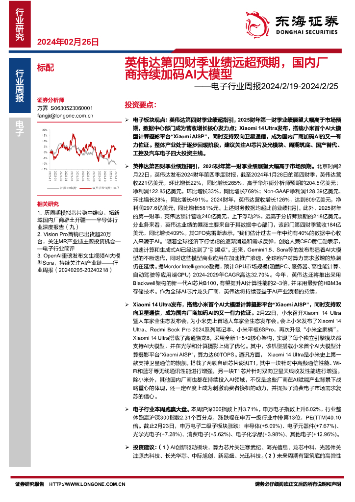 东海证券:电子行业周报2024/2/19-:英伟达第四财季业绩远超预期,国内厂商持续加码AI大模型.pdf