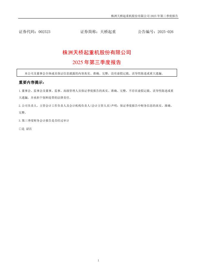 002523-天桥起重:2025年三季度报告.pdf