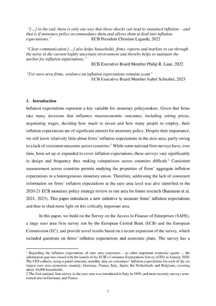 欧洲央行:SAFE更新通胀预期?关于欧元区企业的新调查证据(英文版).pdf