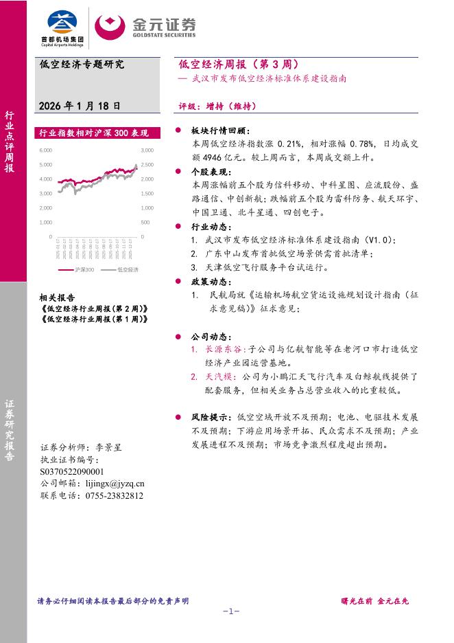 金元证券:低空经济周报(第3周):武汉市发布低空经济标准体系建设指南.pdf