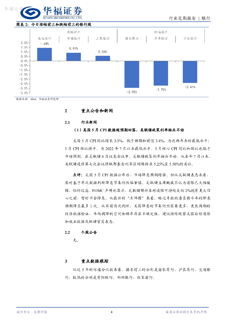 华福证券:银行日报:美国5月CPI数据超预期回落,美联储政策利率按兵不动.pdf