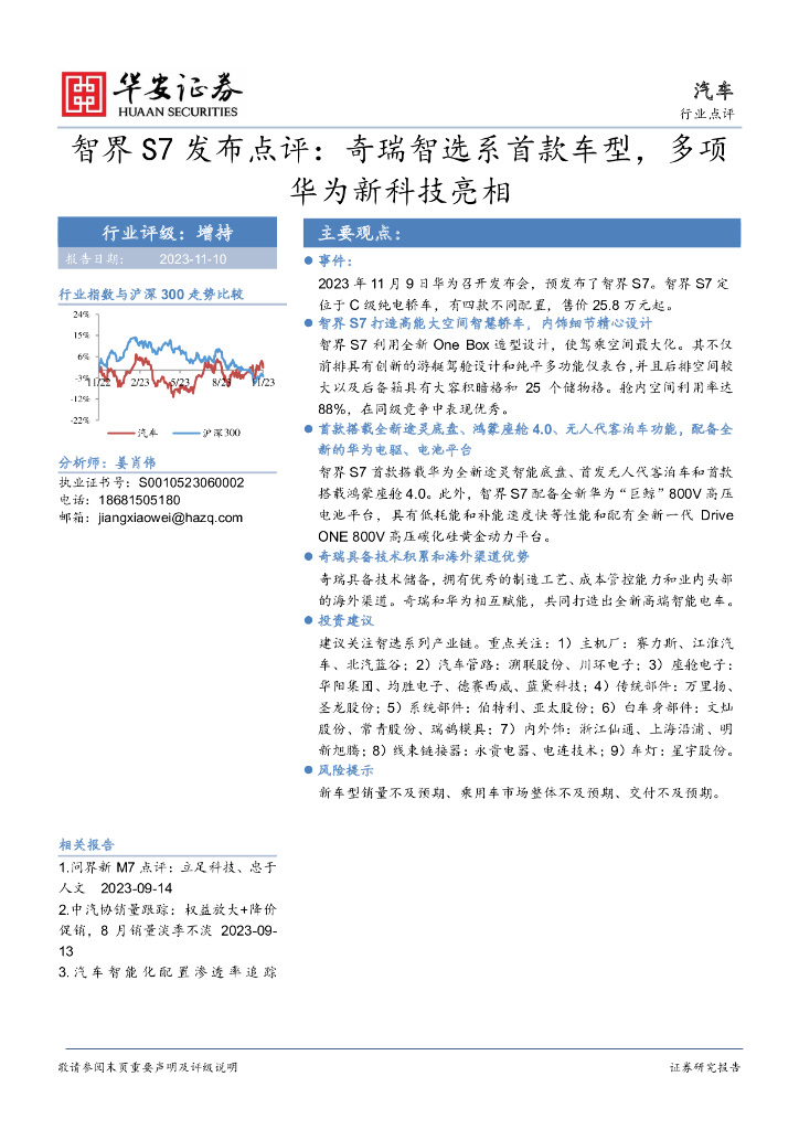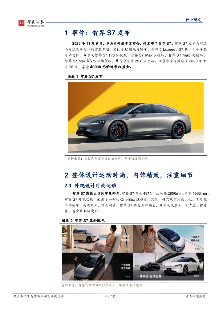 华安证券:汽车行业点评:智界S7发布点评:奇瑞智选系首款车型,多项华为新科技亮相.pdf