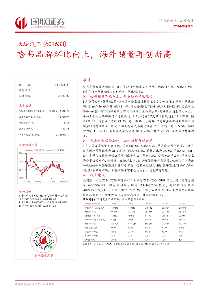 国联证券:长城汽车(601633)-哈弗品牌环比向上,海外销量再创新高.pdf
