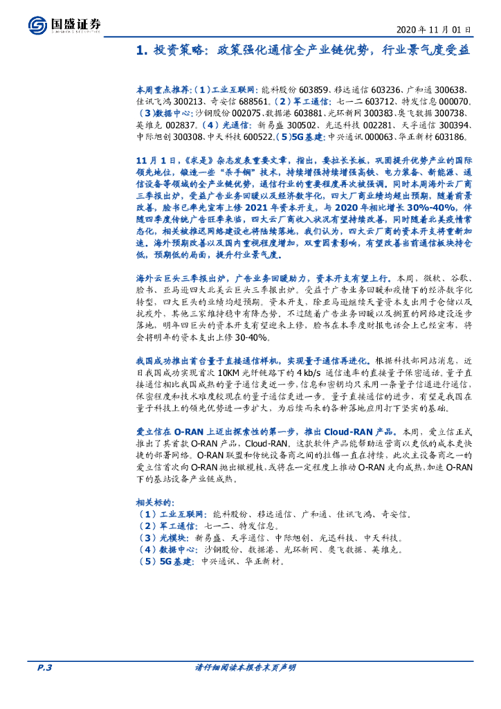 国盛证券:通信行业周报:政策强化通信全产业链优势,行业景气度将上行.pdf