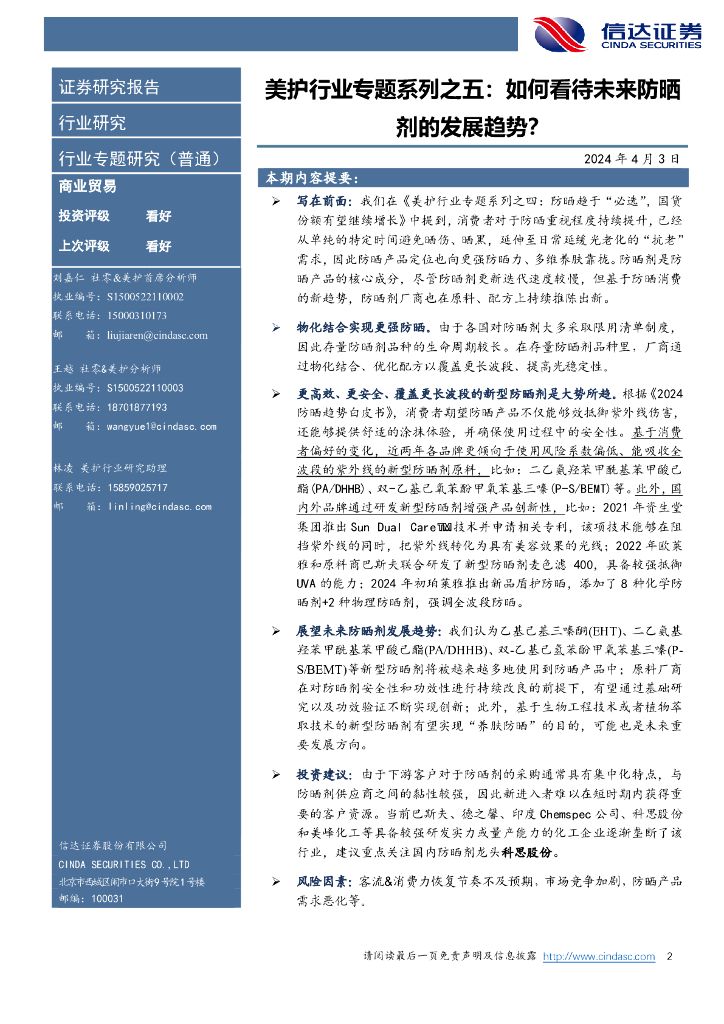 信达证券:美护行业专题系列之五:如何看待未来防晒剂的发展趋势?.pdf