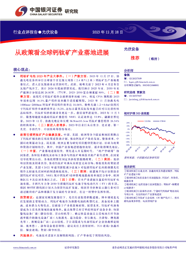 中国银河:光伏设备行业点评报告:从政策看全球钙钛矿产业落地进展.pdf