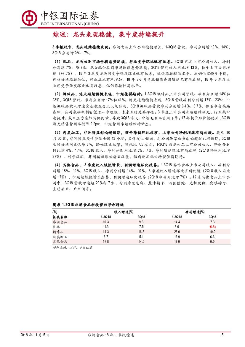 中银国际:非酒食品18年三季报综述:龙头表现稳健,集中度持续提升.pdf