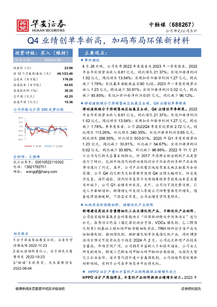 华安证券:中触媒(688267)-Q4业绩创单季新高,加码布局环保新材料.pdf