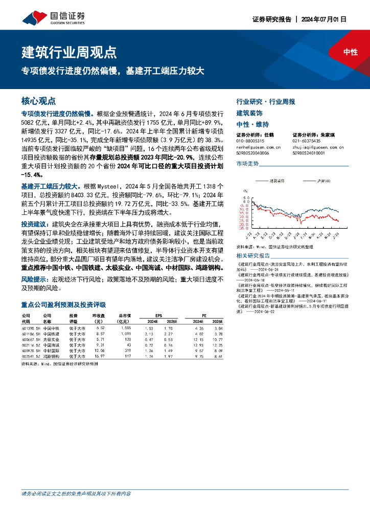 国信证券:建筑行业周观点:专项债发行进度仍然偏慢,基建开工端压力较大.pdf