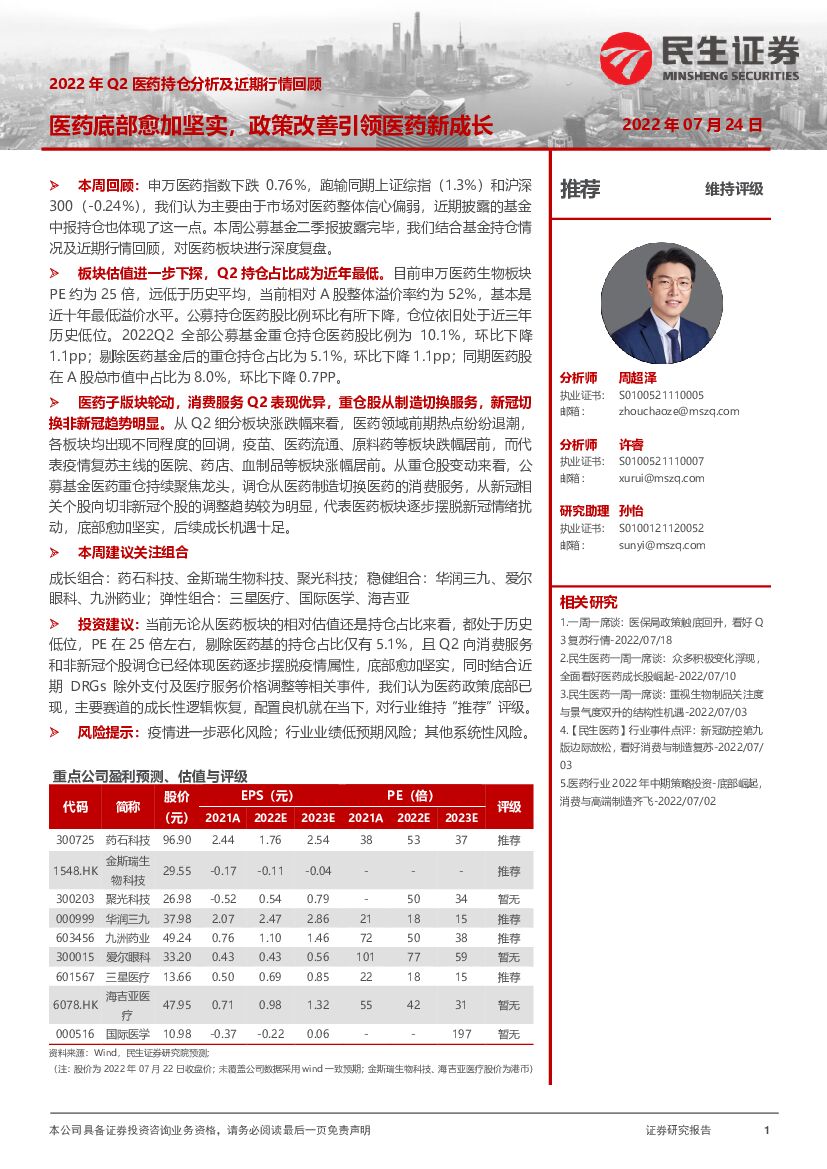 民生证券:2022年Q2医药持仓分析及近期行情回顾:医药底部愈加坚实,政策改善引领医药新成长.pdf