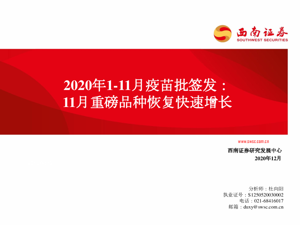 西南证券:2020年1-11月疫苗批签发:11月重磅品种恢复快速增长.pdf