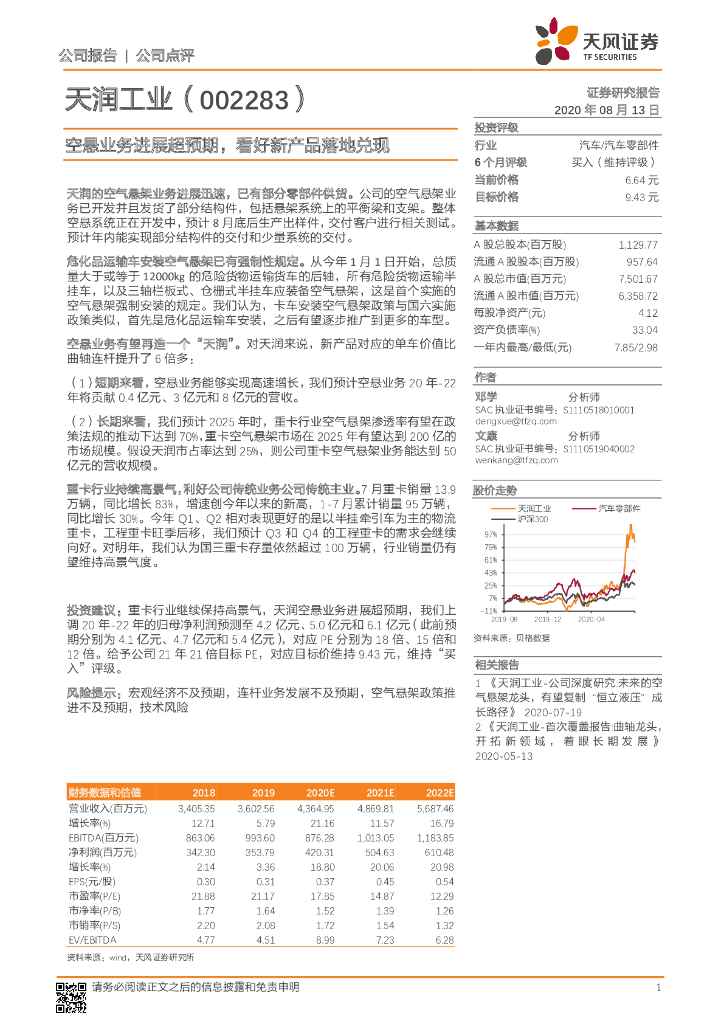 天风证券:天润工业(002283)-空悬业务进展超预期,看好新产品落地兑现.pdf