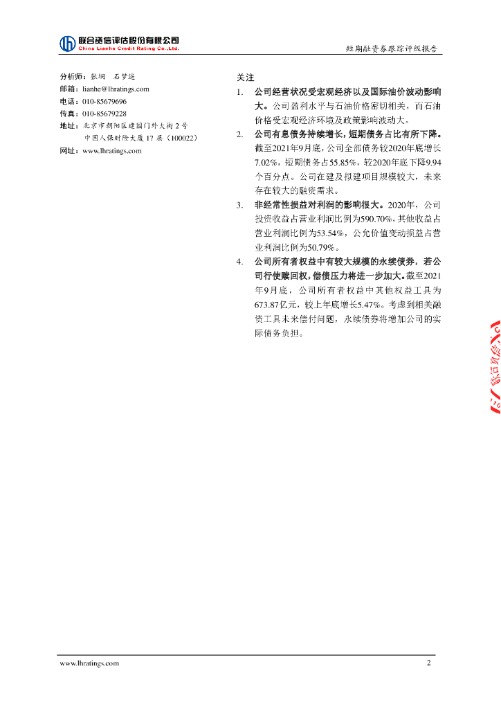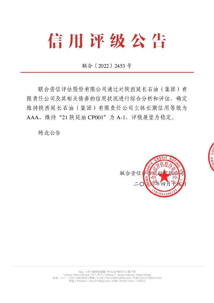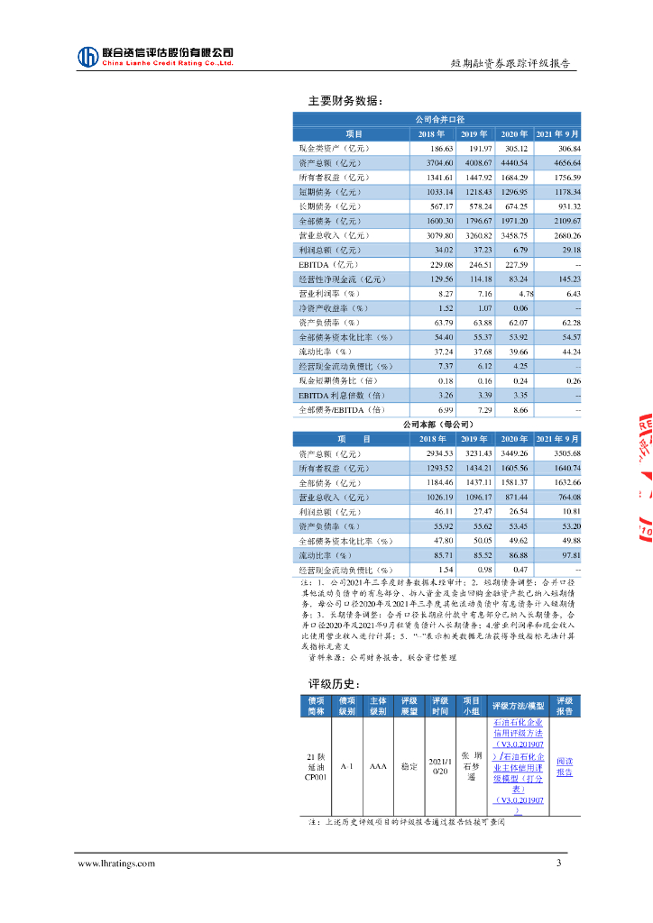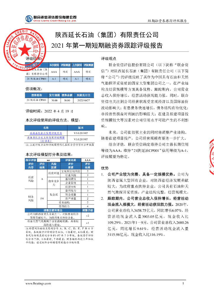 联合资信:陕西延长石油(集团)有限责任公司2021年第一期短期融资券跟踪评级报告.pdf