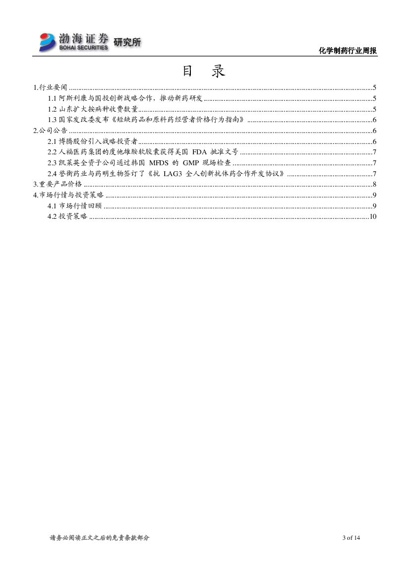 渤海证券:化学制药行业周报:继续看好一致性评价和创新药等投资主线.pdf