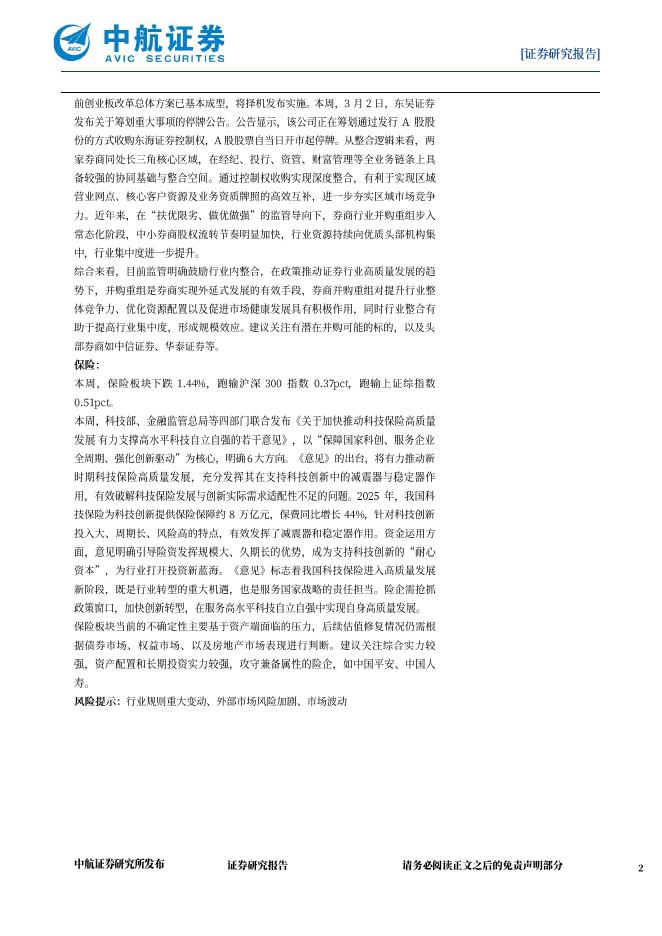 中航证券:非银行业周报(26年第七期):资本市场投融资改革持续深化,关注券商并购重组主线.pdf