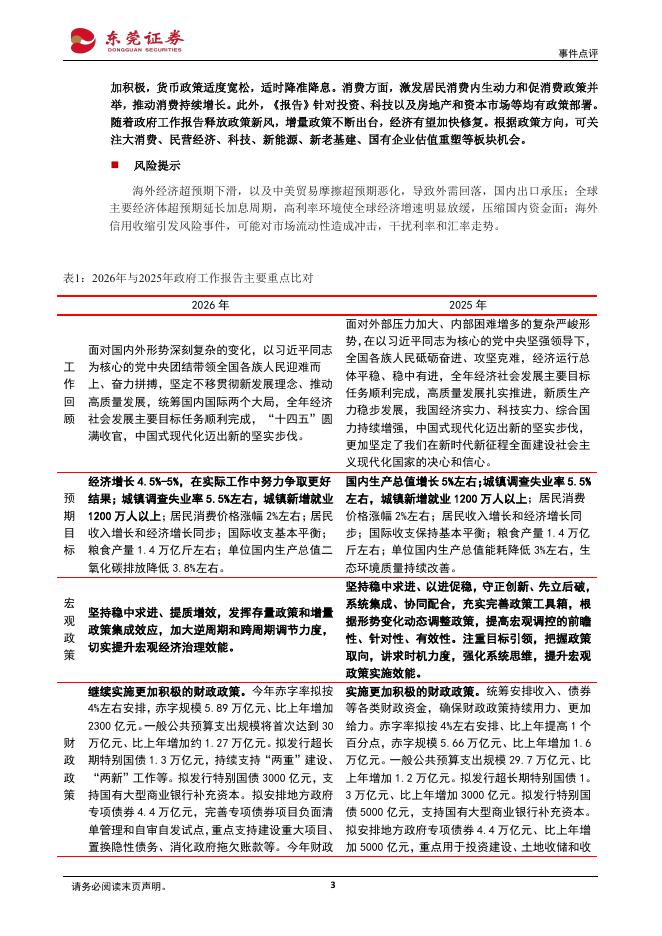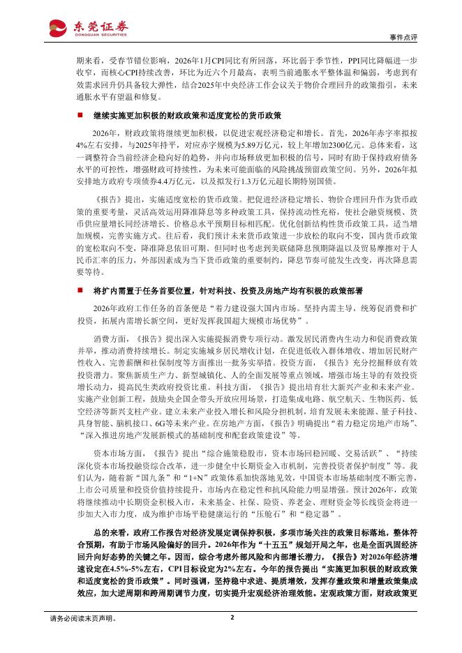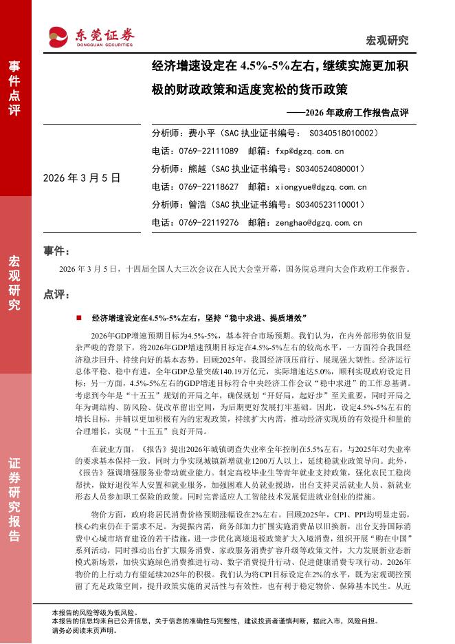 东莞证券:2026年政府工作报告点评:经济增速设定在4.5%-5%左右,继续实施更加积极的财政政策和适度宽松的货币政策-260305.pdf