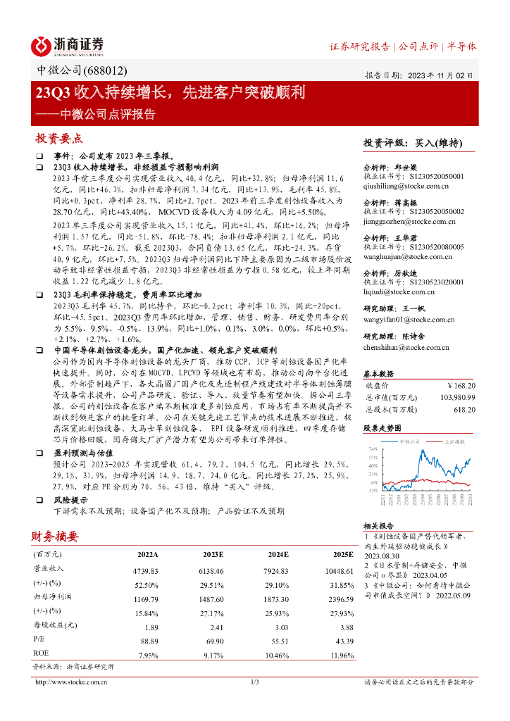 浙商证券:中微公司(688012)-点评报告:23Q3收入持续增长,先进客户突破顺利.pdf