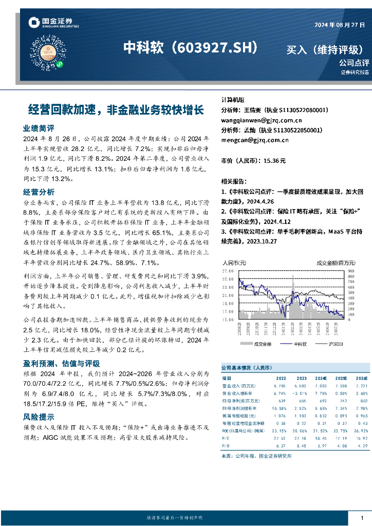 国金证券:中科软(603927)-经营回款加速,非金融业务较快增长.pdf