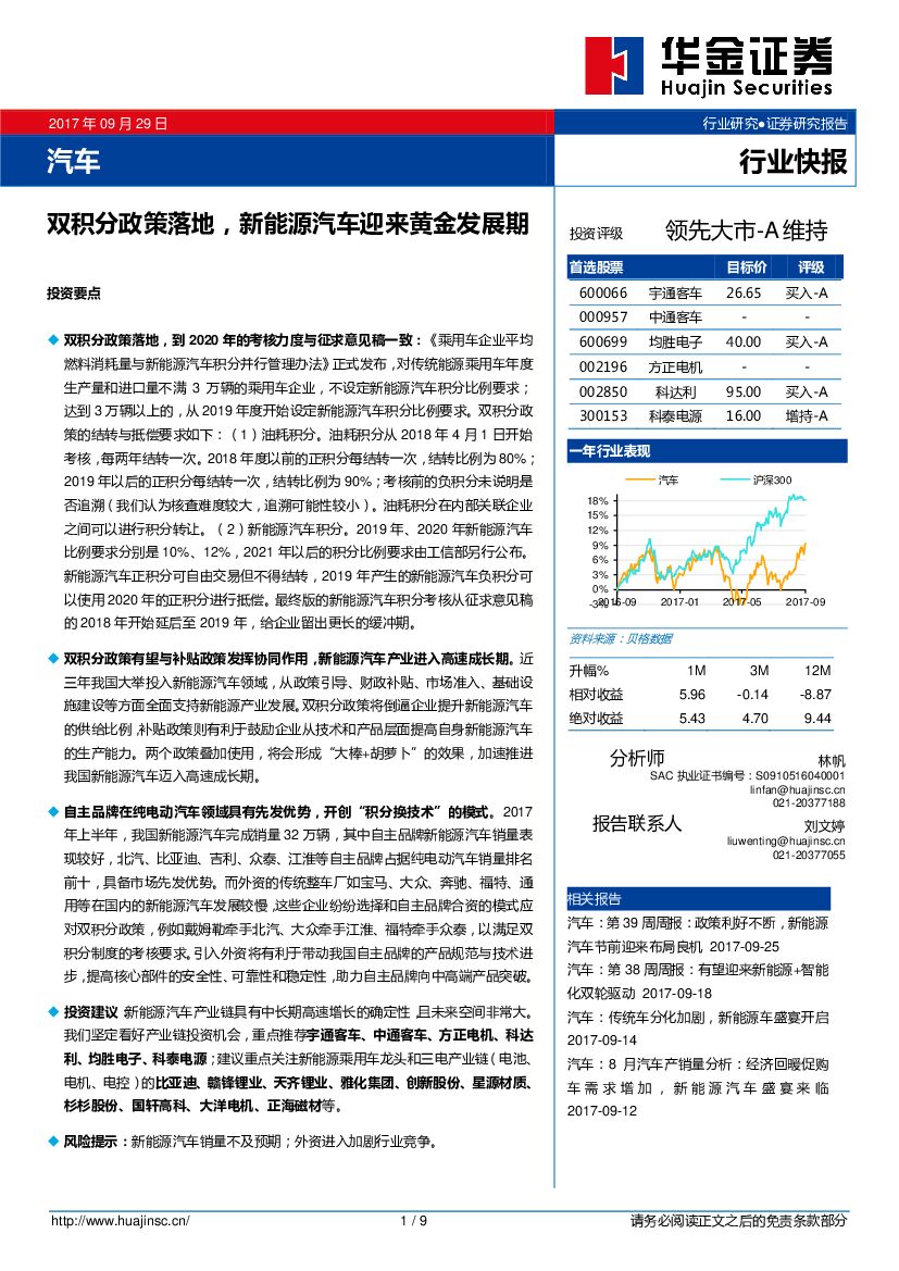 华金证券:汽车行业快报:双积分政策落地,新能源汽车迎来黄金发展期.pdf