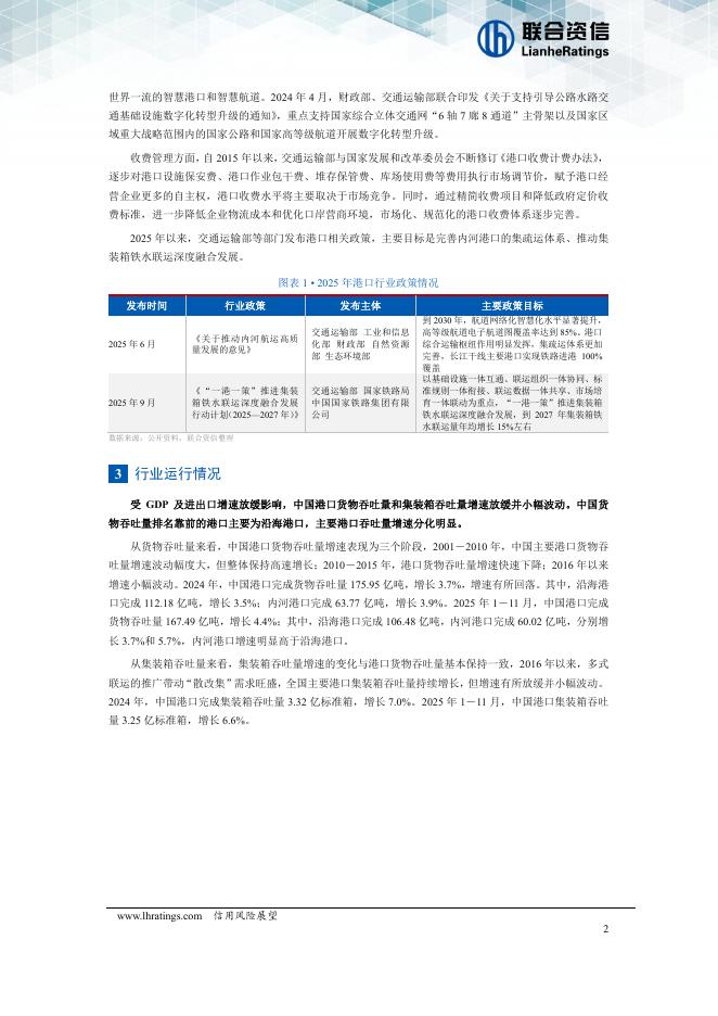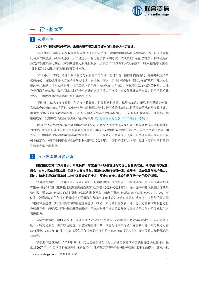 联合资信评估:港口行业2026年度信用风险展望(2026年2月):吞吐量增速放缓,基建与内需托底行业基本面.pdf