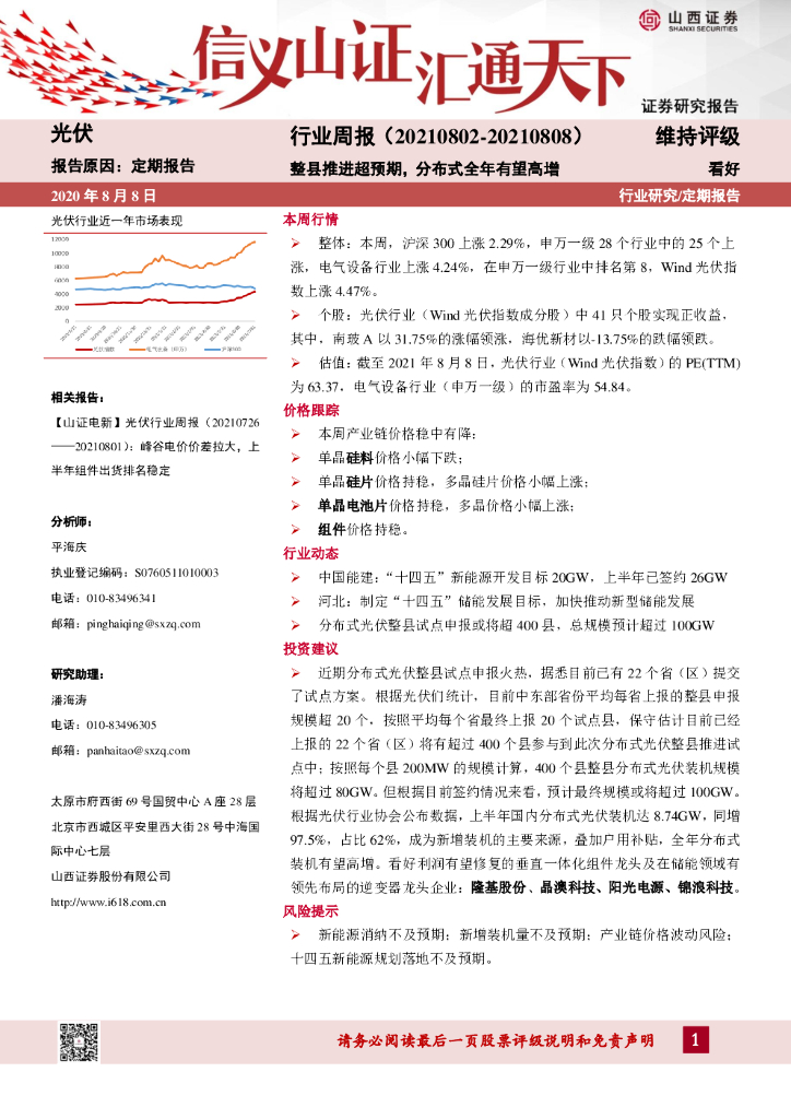 山西证券:光伏行业周报:整县推进超预期,分布式全年有望高增.pdf