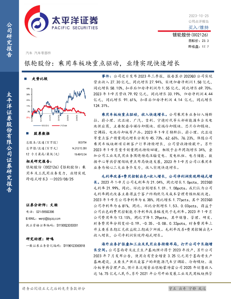 太平洋证券:银轮股份(002126)-乘用车板块重点驱动,业绩实现快速增长.pdf
