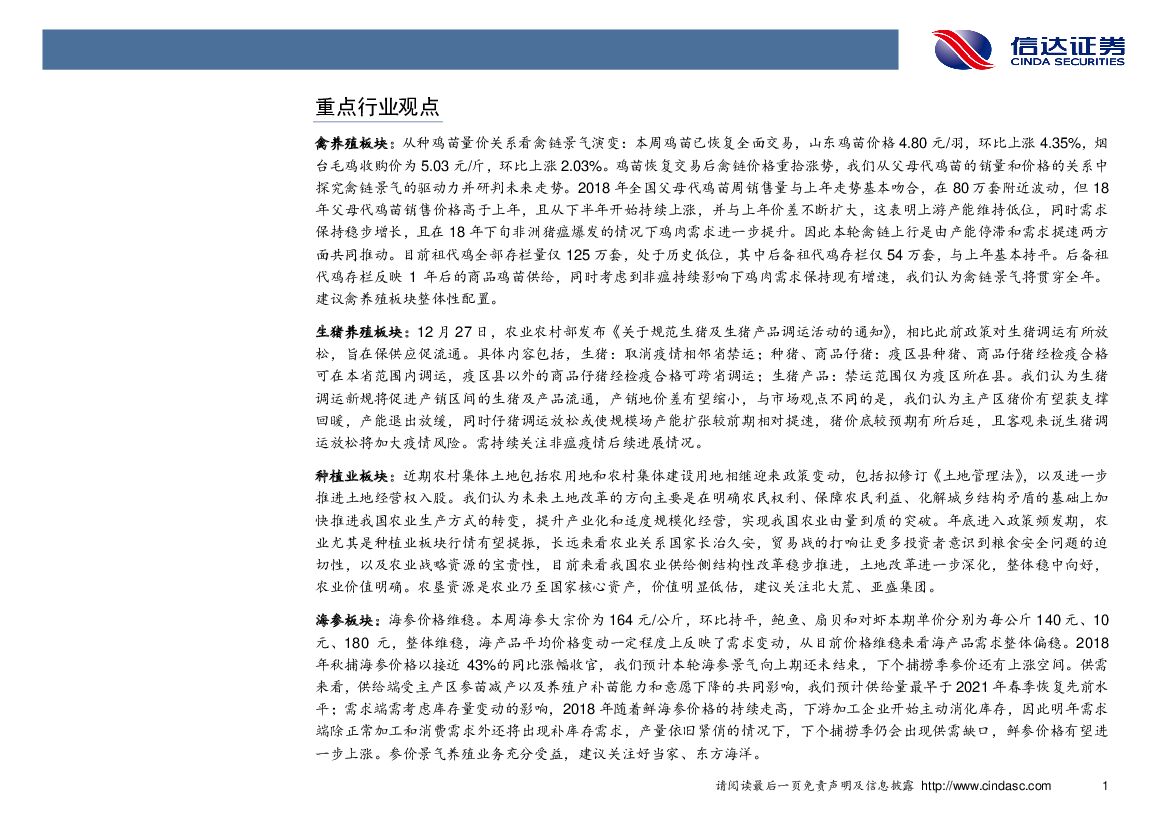 信达证券:农林牧渔2019年1月第1期周报:从种鸡苗量价关系看禽链景气演变.pdf