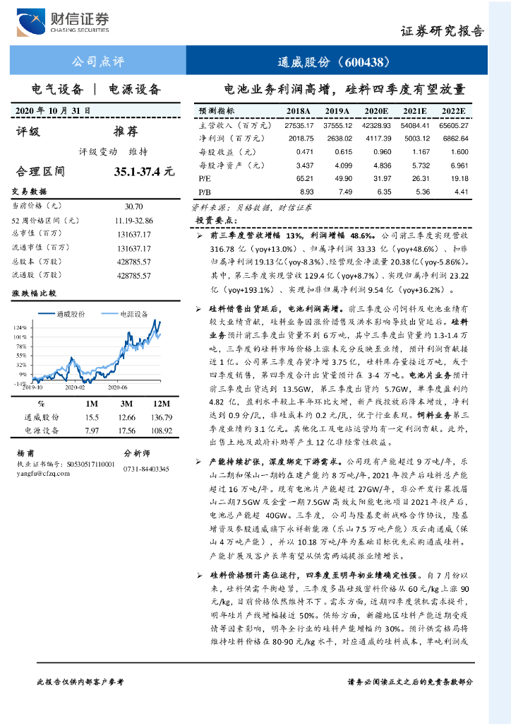 财信证券:通威股份(600438)-电池业务利润高增,硅料四季度有望放量.pdf