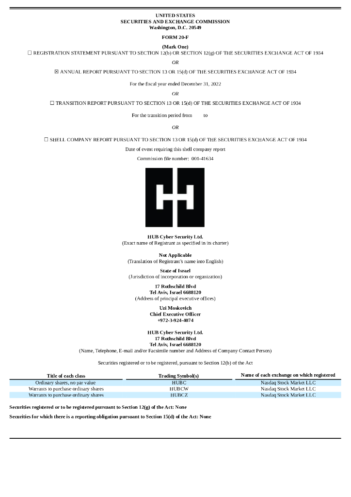HUB Cyber Security Ltd.(HUBC)2022财年年度报告(英文版).pdf