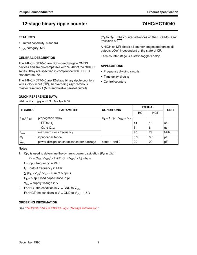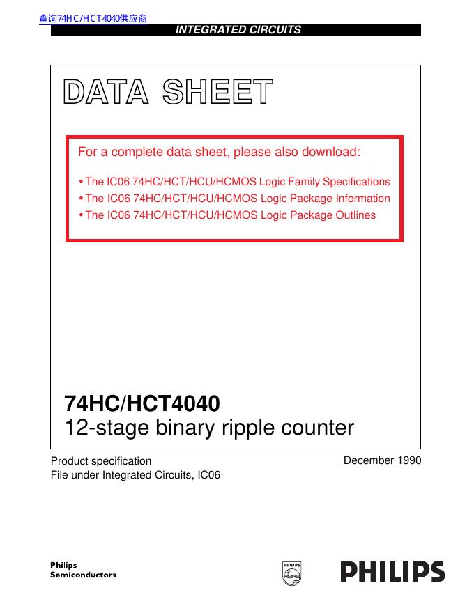 PHILIPS 74HC/HCT4040 12-stage binary ripple counter 数据手册.pdf