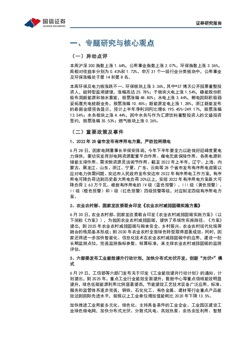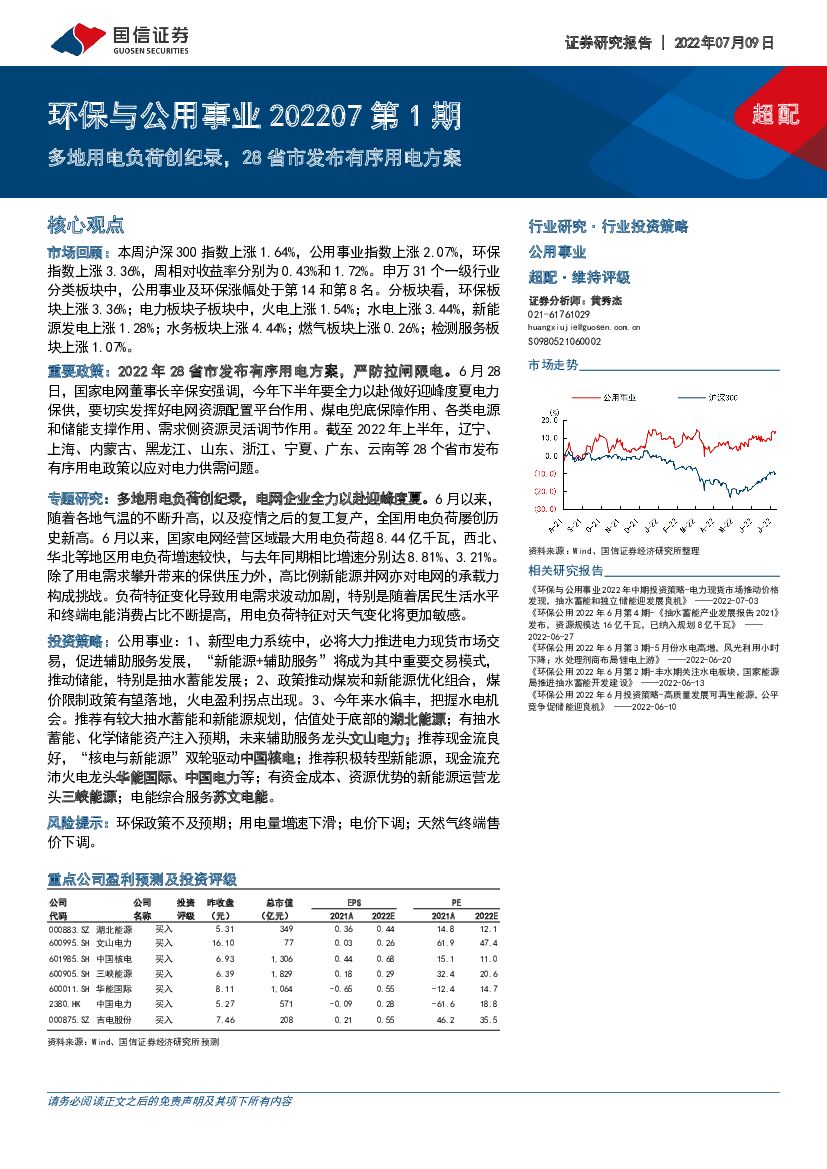 国信证券:环保与公用事业202207第1期:多地用电负荷创纪录,28省市发布有序用电方案.pdf