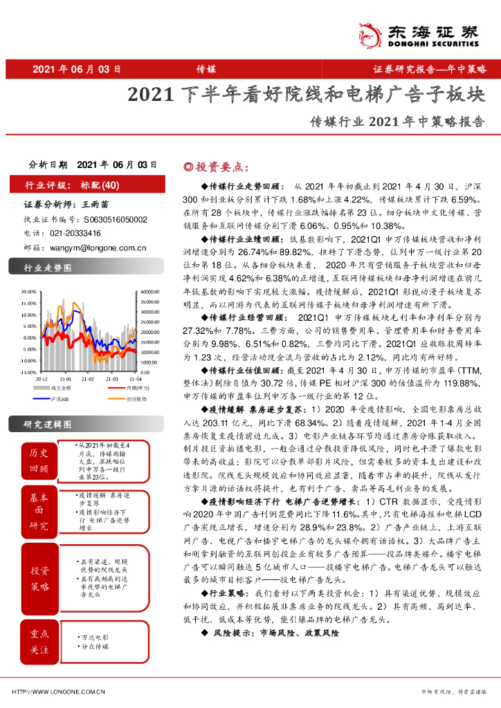 东海证券:传媒行业2021年中策略报告:2021下半年看好院线和电梯广告子板块.pdf
