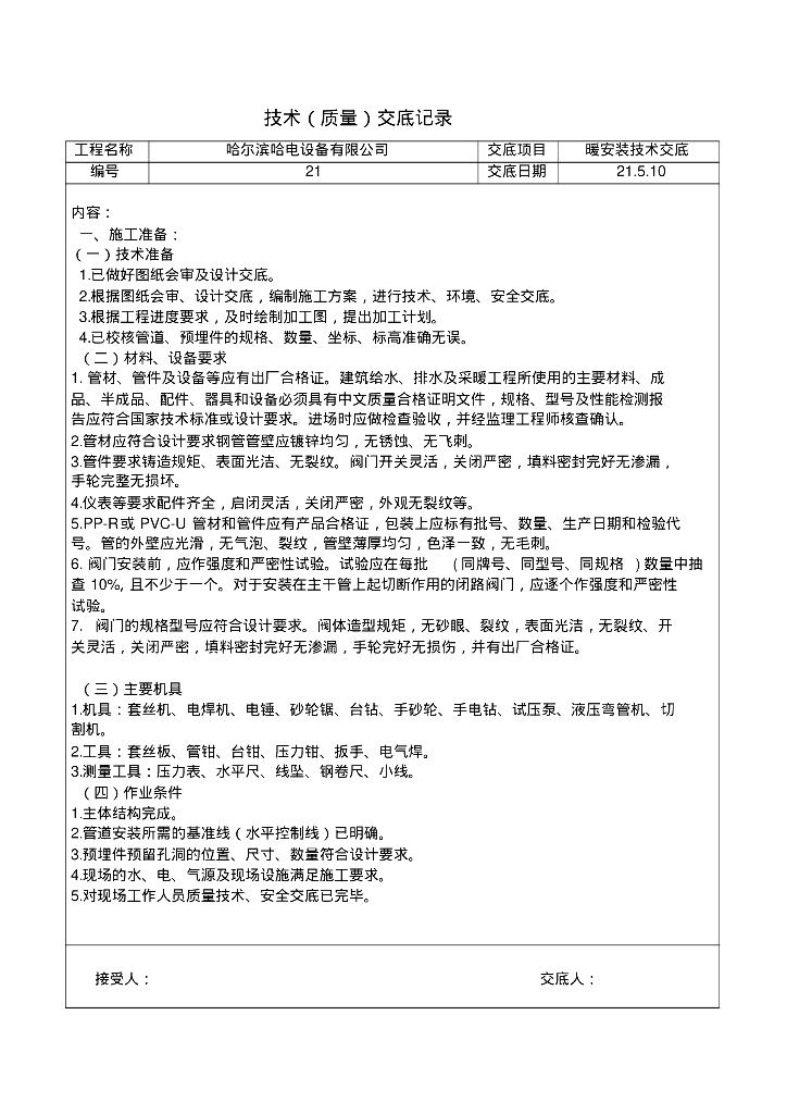 某设备有限公司暖通质量交底.pdf