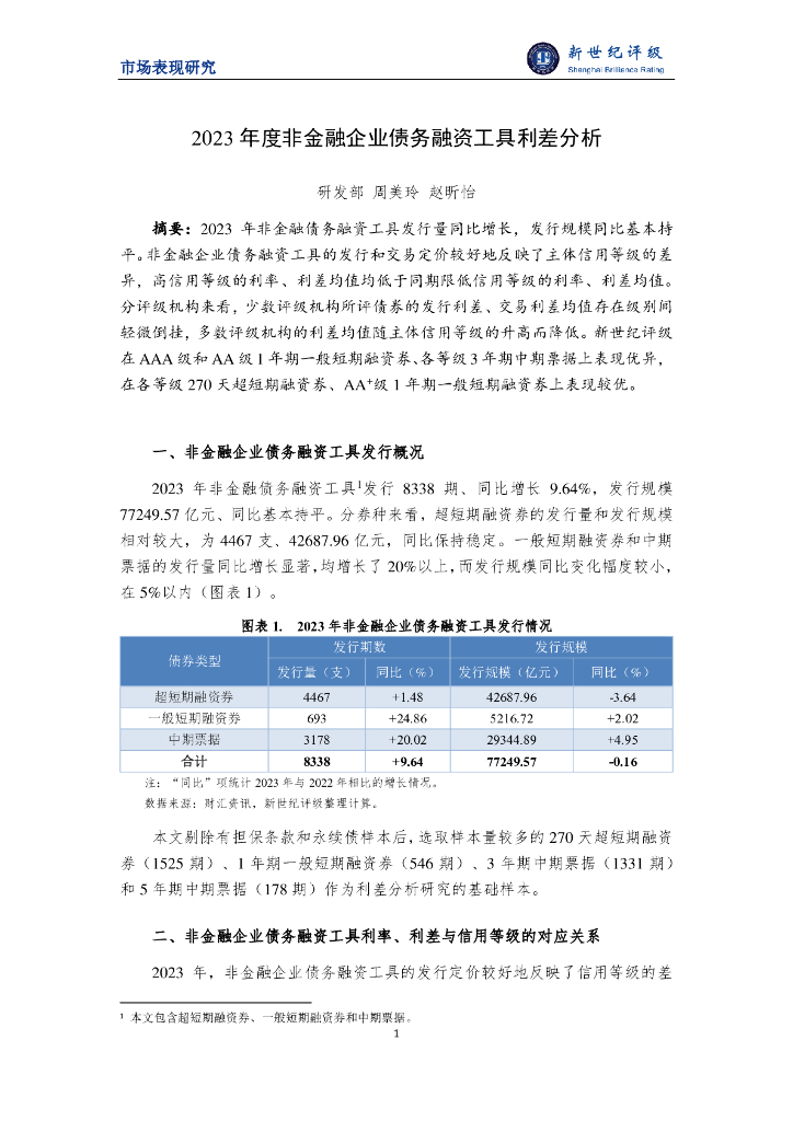 新世纪评级:2023年度非金融企业债务融资工具利差分析报告.pdf