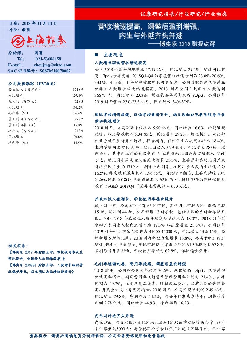 上海证券:博实乐2018财报点评:营收增速提高,调整后盈利增强,内生与外延齐头并进.pdf