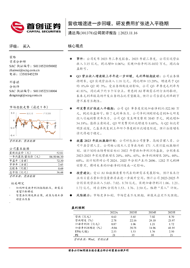 首创证券:通达海(301378)-公司简评报告:营收增速进一步回暖,研发费用扩张进入平稳期.pdf