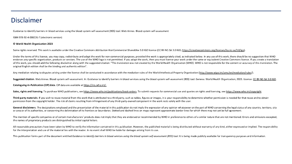 WHO世界卫生组织:2024年使用血液系统自我评估工具识别血液服务中的障碍指南-血液系统自我评估报告(英文版).pdf