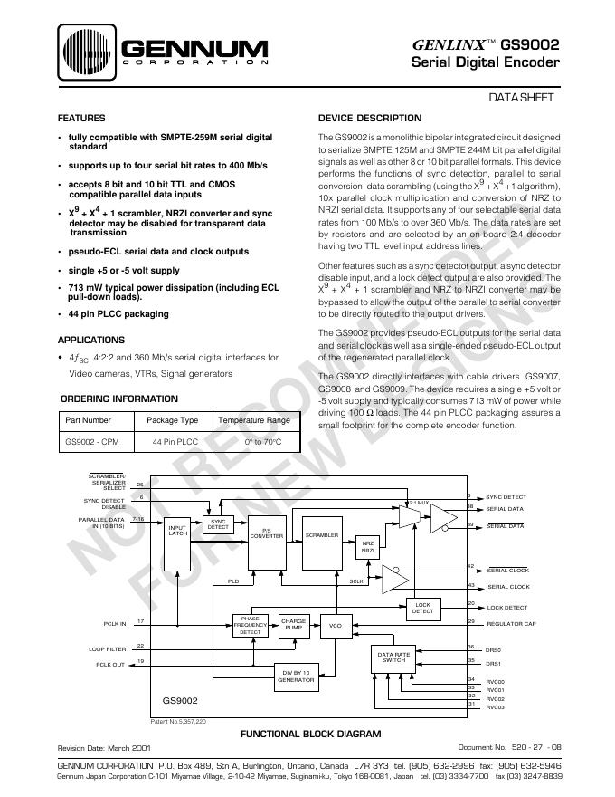 GENNUM GENLINX GS9002 数据手册.pdf