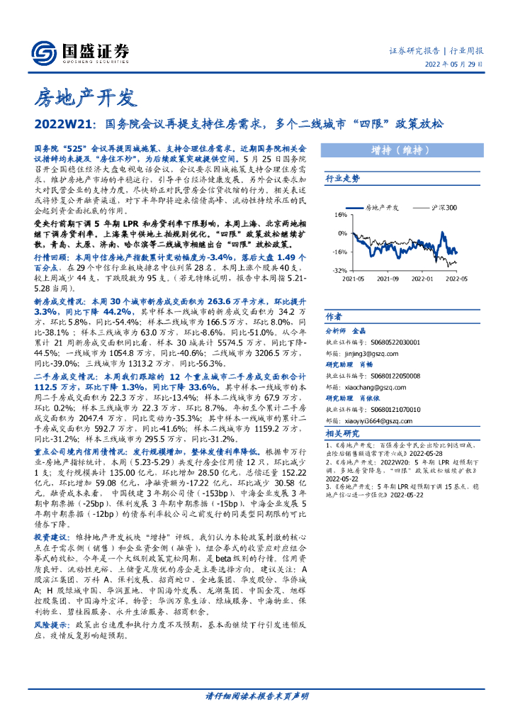 国盛证券:房地产开发2022W21:国务院会议再提支持住房需求,多个二线城市“四限”政策放松.pdf