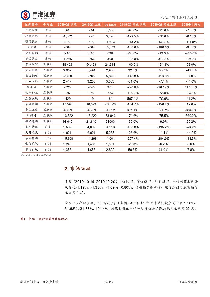 申港证券:文化传媒行业研究周报:三季度预告边际向好 关注业绩确定性龙头.pdf