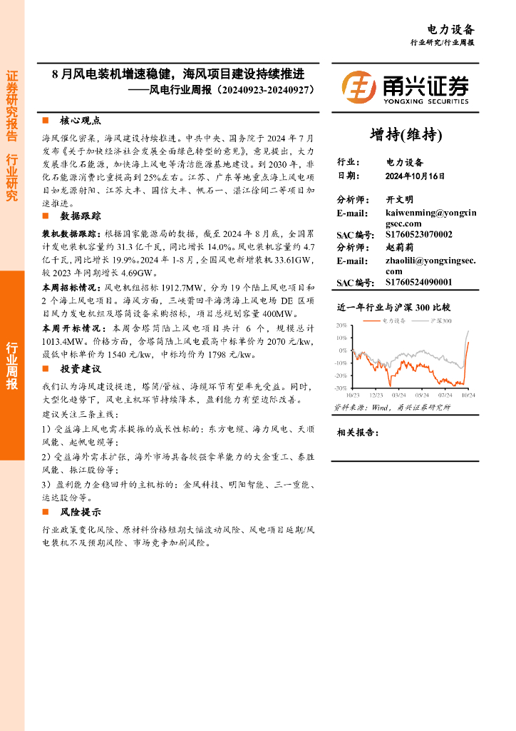 甬兴证券:风电行业周报:8月风电装机增速稳健,海风项目建设持续推进.pdf