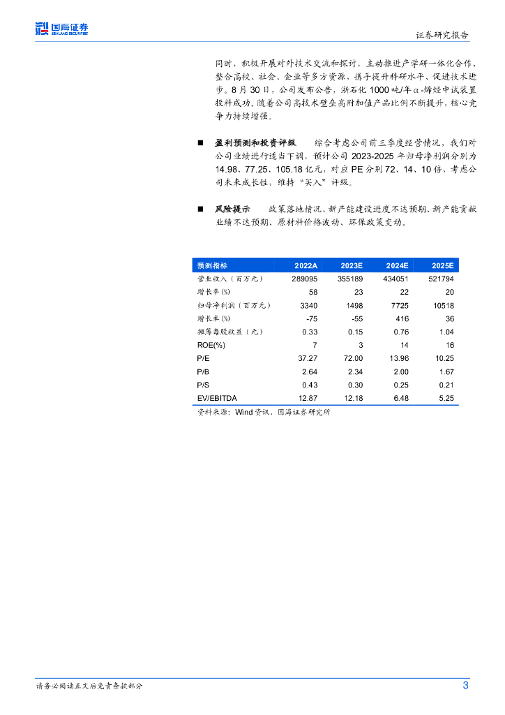 国海证券:荣盛石化(002493)-2023年三季报点评:三季度业绩环比高增,高附加值产品相继投产.pdf