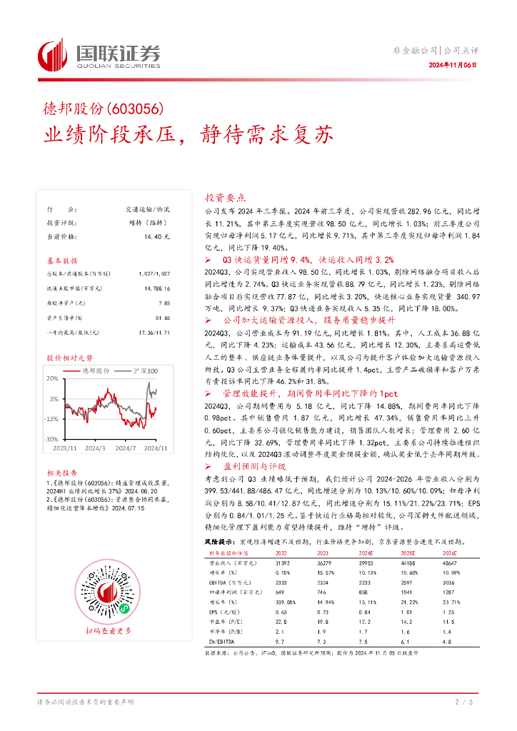 国联证券:德邦股份(603056)-业绩阶段承压,静待需求复苏.pdf