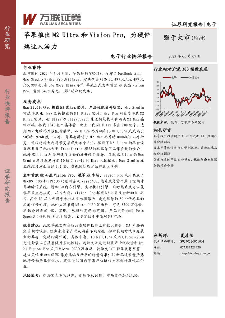万联证券:电子行业快评报告:苹果推出M2 Ultra和Vision Pro,为硬件端注入活力.pdf