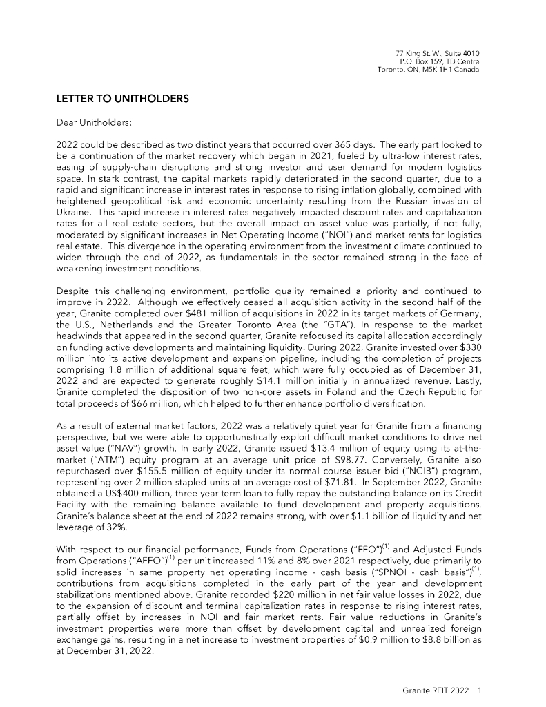 Granite Real Estate Investment Trust(GRT)2022财年年度报告(英文版).pdf